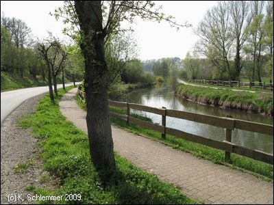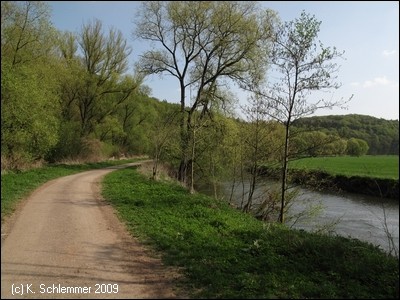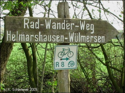 Vom Radweg aus in der Gegenrichtung gibt es zwar keinen Wegweiser, aber das "Tor" ist dennoch kaum zu Übersehen (wenn man nicht zu schnell fährt!). Man fährt nun entlang der Diemel.