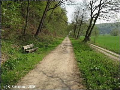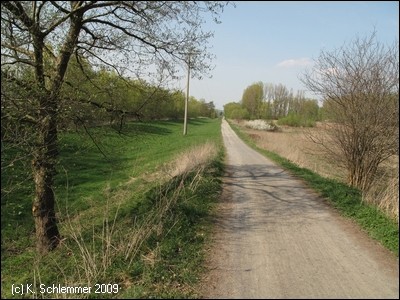 Kurz darauf benutzt der Radwanderweg wieder die Bahntrasse: schnurgerade Strecke!