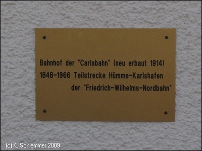 Als Stichbahn der Friedrich-Wilhelms-Nordbahn verband die Carlsbahn die Stadt Karlshafen über Hümme mit der Stadt Kassel. Die Strecke wurde 1848 in Betrieb genommen. Wegen der zunehmenden Verlagerung des Verkehrs auf die Straße wurde der Personentransport 1966 eingestellt, vereinzelt fand wohl noch Güterverkehr statt. Der am linken Weserufer gelegene Bahnhof der Carlsbahn wurde Anfang der 1970er Jahre abgerissen, an seiner Stelle steht seit langem eine Schule. Ein alter Triebwagen vor dem Gebäude erinnert an die Bahnstrecke.