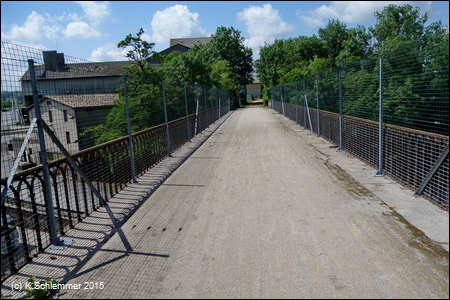 Hier geht es nicht weiter, man muss auf die Straße, um zum Bahnhof zu gelangen.