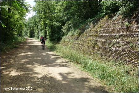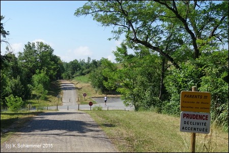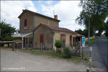 Von hier aus sind es etwa 43 km zum Bahnhof Castres, immer auf der alten Bahntrasse, weitestgehend autofrei. Nach den Beschreibung im Internet soll es für die Rückfahrt auch einen Busverkehr mit Fahrradtransport geben (Tarn Bus 703), eigene Erfahrungen habe ich hierzu nicht. Vom Bahnhof Castres aus kann man aber mit dem Zug nach Saint-Sulpice fahren (Linie Mazamet-Castres-Toulouse) und auf dem Radweg entlang des Flusses Tarn nach Albi zurückfahren (gut 60 km, siehe weiter unten).