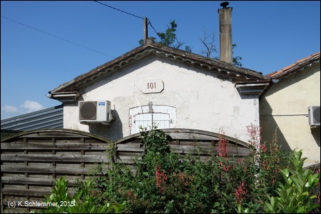 Die Häuschen der Streckenwärter sind noch in Benutzung: Posten Nr. 101. Der Weg führt an der D612 entlang über einige kleine Brücken.