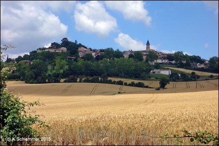 Wir nähern uns dem Ort Lautrec, der hoch über der Landschaft auf einem Hügel liegt und zu den schönsten Dörfern Frankreich zählen soll.