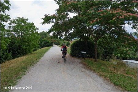 Wer mit dem Zug nach Saint-Sulpice und von dort am Tarn entlang zurück nach Albi fahren möchte, folgt der Beschilderung am Fluss entlang. Es geht über Nebenstraßen und Wirtschaftswege, nicht immer ist die Strecke eben. Auf der Autostraße beträgt die Entfernung rund 46 km, auf dem Radweg haben wir 61 km aufgezeichnet.