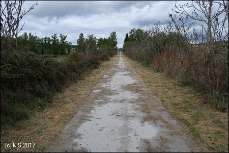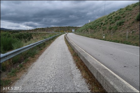 Am Ortsende muss die Straße (N2) überquert werden. In einer schier endlosen Geraden führt der Radweg auf die Berge zu.