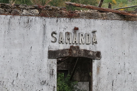 Auch der Bahnhof von Samardã verfällt. Die alte Inschrift hat noch überlebt.