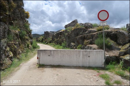 Dann endet der Ausbau jäh an der Kreisgrenze nach Chaves. Ein markanter Felsen thront über der Landschaft.