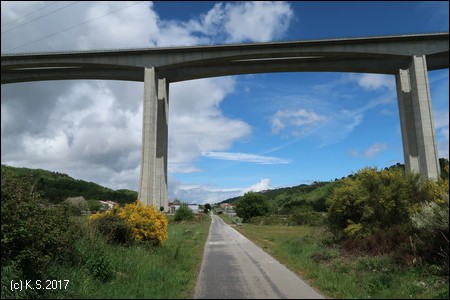 Der Radweg führt über eine Eisenbrücke (Ponte da Parada). Die Betonbrücke der A24 hat ganz andere Dimensionen - ob sie auch so lange hält?