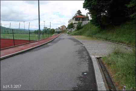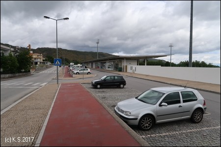 In einem langen Bogen folgt man der "Bahnhofsstraße" (Avenida da Noruega) um die Stadt herum. Am Sportgelände beginnt ein roter Radweg. Hier gibt es auch genügend Parkplätze, falls man mit dem Auto anreist.