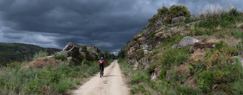 Die Trasse schneidet sich durch die Felsen. Bei Fortunho geht es kurz an der Straße entlang, die Autobahn wird zweimal unterquert.