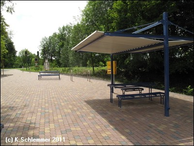 Der Bereich des Parkplatzes wurde umgestaltet, es sind ausreichend Parkplätze für die Radler vorhanden, die mit dem Auto anreisen. Darüber hinaus gibt es überdachte Ruhebänke, eine Informationstafel und einen "Schlauchomat" für die Pechvögel mit einem Platten, die ihr Flickzeug vergessen haben.