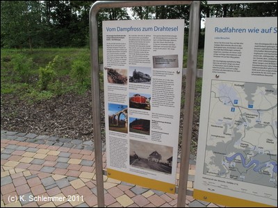 Die neue Fahrradstrecke ist insgesamt gut gelungen. Es gibt keine Pfostensperren, die andernorts schon zu schweren Unfällen geführt haben, aber die "Drängelgitter" an den Straßenquerungen sollten Anlass zur Überarbeitung geben: Schon sind erste Umfahrungen sichtbar, hier könnte noch nachgebessert werden. Zum Glück stehen die Barrieren relativ weit auseinander, so dass auch Tandems, Fahrradanhänger und Rollstühle recht gut passieren können. An weniger bedeutsamen Kreuzungen (Wirtschaftswege) könnte man auch dem Radweg Vorfahrt einräumen. An einigen Abschnitten, wo die Trasse zu den Seiten steil abfällt, vermisst man Geländer. Was noch fehlt, ist ein besserer Bezug zur alten Bahnlinie, aber vielleicht kommen ja noch ein paar Infotafeln. Leider hat man die alten Kilometersteine vernachlässigt, einige liegen umgestürzt am Rande der Strecke. Mit etwas Farbe wärer eine stilgerechte Kilometrierung möglich.