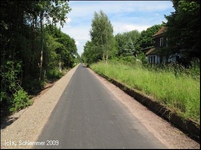 Zufahrt zum Radweg (Blick zurück) Der Bahnhof Buhlen ist Privathaus.