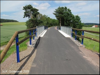 Die kleinen Brücken wurden neu gebaut. In der Ferne erkennt man schon das Selbacher Viadukt oder auch Reiherbachtalbrücke genannt.