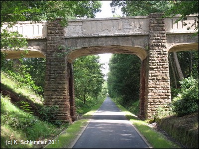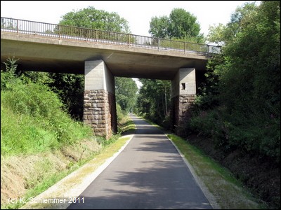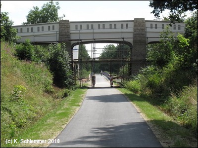 Das fantastische Selbacher Viadukt (193 m lang, 28 m hoch), das aufwändig restauriert wurde, ist vom Radweg aus leider nicht zu sehen. Zwar ist die Fahrt über das mächtige Bauwerk mit tollem Ausblick ins Tal eine Attraktion, wer die Dimensionen des Viadukts aber so richtig wahrnehmen will, muss die Fahrt über einen holprigen Feldweg hinab ins Tal des Reiherbachs in Kauf nehmen (und wieder hinauf auf den Radweg!). Inzwischen sind auch einige Rastplätze mit Regenschutz am Radweg entstanden, und es gibt Cafes und Gaststätten an der Strecke (z.B. Gut Heide, Bahnhof Netze).