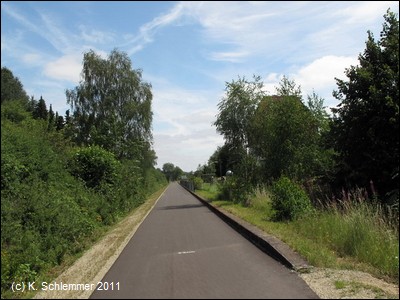 Bahnübergang Kilometer 29,582 der alten Bahnstrecke (Blick zurück).
