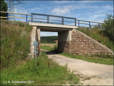 Die alten Kilometersteine haben Schieflage - schade, dass man sie nicht restauriert hat! Vor Selbach folgt noch eine Brücke im typischen Baustil dieser Strecke.