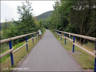 Noch ein kurzes Stück bergab, dann führt die Trasse wieder leicht aufwärts nach Höringhausen. Die Gestaltung der kleinen Brücken ist sehr schön gelungen!