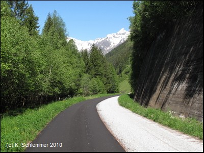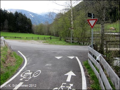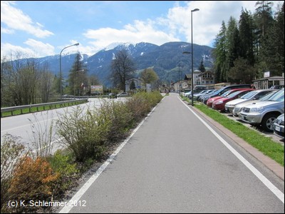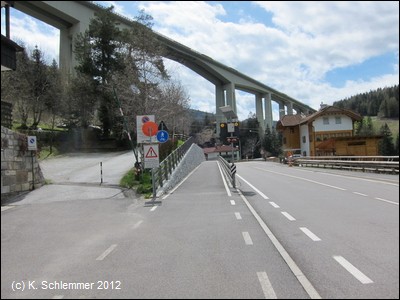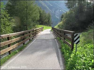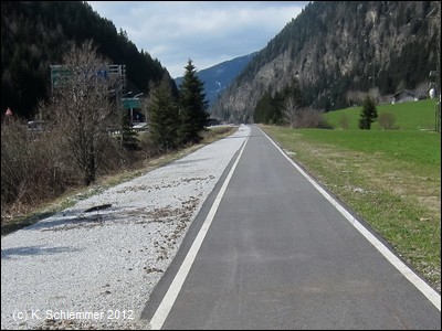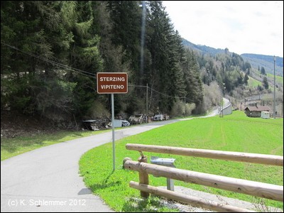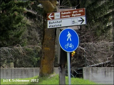 Aus dem Pflerschtal kommend zweigt der Radweg vor dem Bahnhof links ab durch Gossensass. Man kann aber genauso gut geradeaus fahren und erreicht dann wieder den Radweg am südlichen Ortsende.