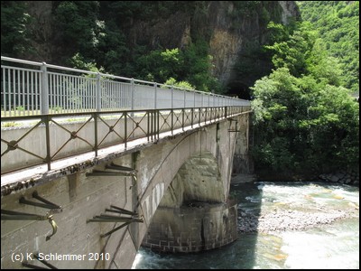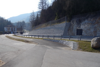 Gut ausgebaut zwischen Felsen und Betonmauer geht es talwärts.