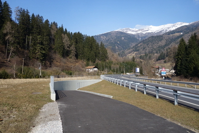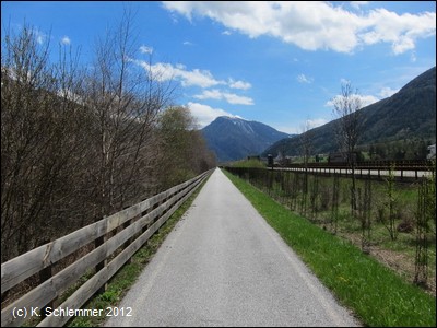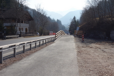 Hinter Grasstein erreicht man einen neuen Radweg entlang der Straße.