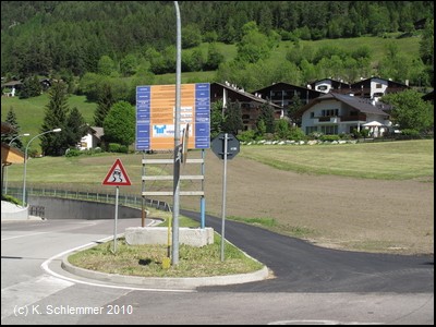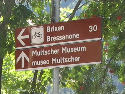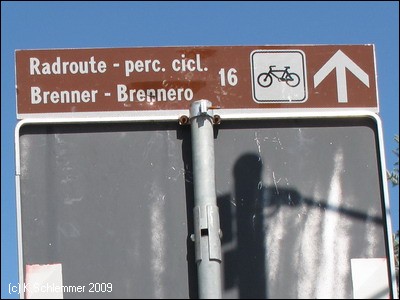 Die Beschilderung in Sterzing ist manchmal etwas unglücklich montiert (hier: in Richtung Brenner).