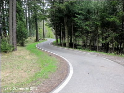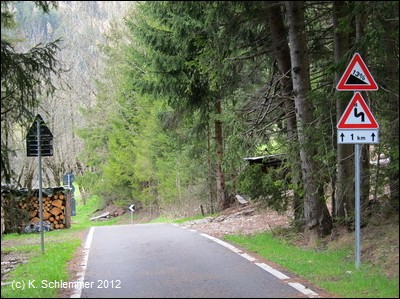Dann geht es kräftig bergab ins Tal (13% Gefälle). Es folgen ein paar Serpentinen.