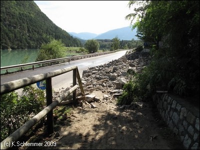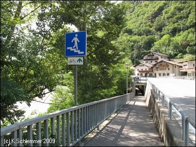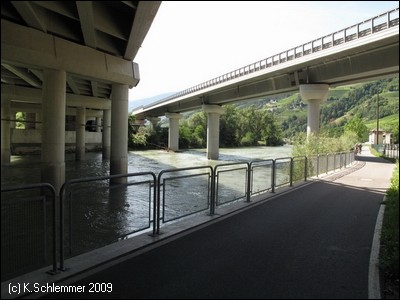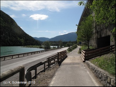 Am Ortsende von Fortezza (Franzensfeste) unterquert der Radweg die Brennerautobahn und führt am Stausee entlang. Auch hier hatten die Unwetter im Herbst 2009 die Strecke verwüstet.