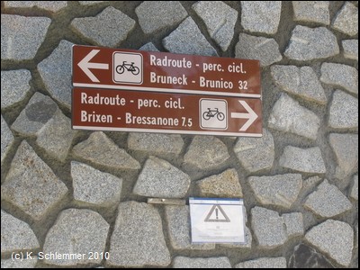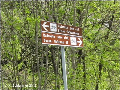 Am südlichen Ortsausgang ist der Radweg Richtung Brixen dann gut zu finden. Kerzengerade Strecke!