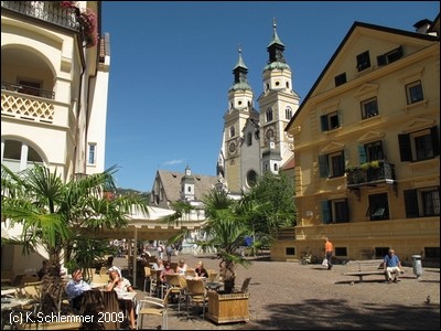 Vorbei an den Gärten und Häusern ins historische Zentrum von Klausen. Ein Aufstieg zum Kloster ist zwar schweißtreibend, aber der Ausblick ist fantastisch.
