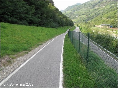 Leider ist die Gesamtstrecke Brenner - Bozen nicht durchgängig asphaltiert, auf die Einzelheiten wird im Bildteil näher eingegangen. Für Skater und Rollstuhlfahrer ist natürlich besonders der untere Abschnitt auf der Bahntrasse zwischen Waidbruck und Kardaun ideal (18 km, bis Bozen 21 km).