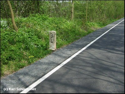 Am Rande der Strecke sind die alten Hektometersteineerhalten geblieben. Hier ist die Gestaltung des Radwegs gelungen.