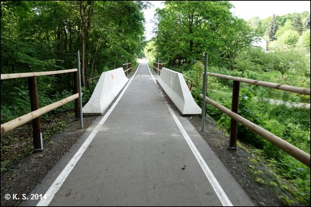 An den Resten der alten Brücke, am Gasthof Gleistal, endet der Bahntrassenradweg.