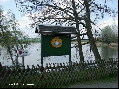Der Bahnhof von Hainspitz liegt abseits des Radwegs. Wir überqueren die B7 und fahren zum Hainspitzer See- nun abseits der alten Bahntrasse.
