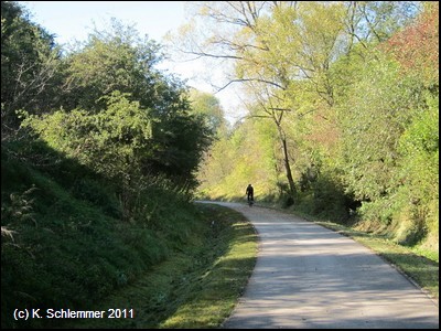 Dieser Pfad ist allerdings nicht so richtig Radweg konform. Dann geht es auf der Trasse durch einen "grünen Tunnel".