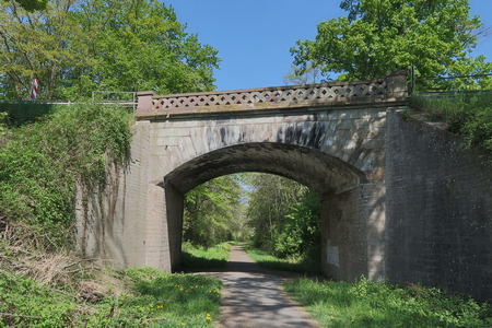 Über die Brücke und weiter nach Groß Ellershausen. die Hektometerstein der Bahnstrecke sind noch guit zu lesen.