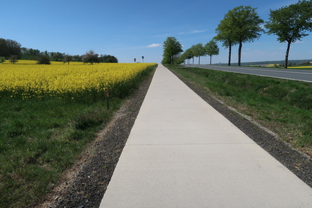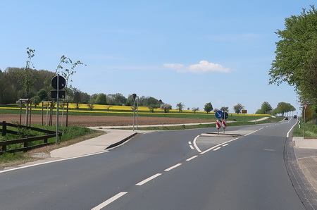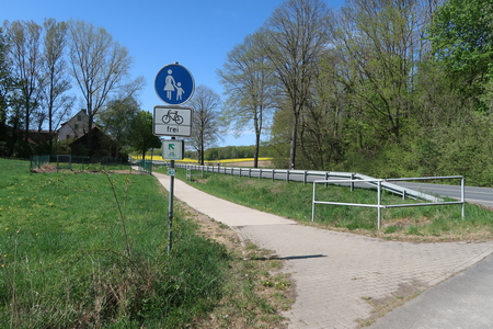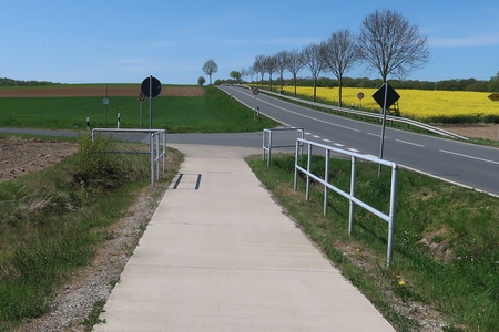 Am westlichen Ortsausgang von Dransfeld beginnt wieder ein Radweg entlang der B3.