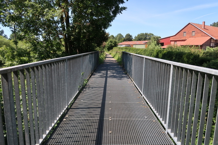 Durch Benniehausen, dann im Zickzack auf einer kleinen Brücke über die Garte. Bis nach Wöllmershausen folgt der Radweg parallel der Straße.