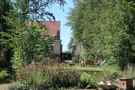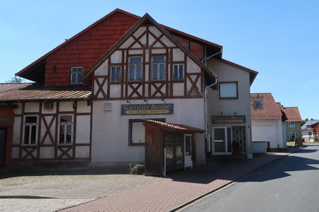 Auch auf dem Abschnitt kurz vor der Ortseinfahrt wäre etwas Pflege kein Luxus. Der alte Bahnhof (Privathaus) dagegen ist ein Schmuckstück.