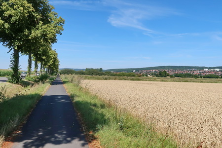 Vor Diemarden mündet der Radweg in einen Wirtschaftsweg (Blick zurück). An der Einmündung der Bahnhofstraße befand sich der Haltepunkt Diemarden.