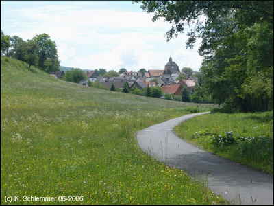 Durch den Ort der Beschilderung folgen! Am Ortsende rechts halten, die Bahntrasse links von uns. Nicht durch die Unterführung!