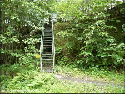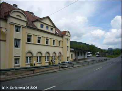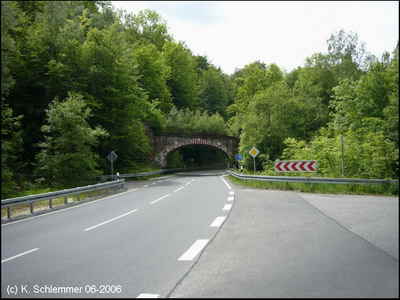 An diesem Straßendurchlass kann man rechts abbiegen Richtung Großalmerode. Der ehemalige Ostbahnhof, der keine Bahnverbindung zum Westbahnhof hatte (zu steil für die Bahn), ist heute ein stattliches Wohnhaus.