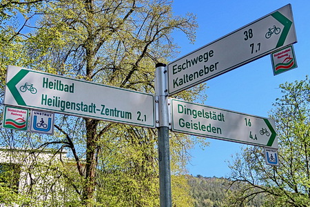 Heiligenstadt mit heute ca. 17.000 Einwohnern liegt im Obereichsfeld, nicht weit vom Dreiländereck zu Hessen und Niedersachsen. Es bestehen Bahnverbindungen nach Erfurt, Göttingen, Halle (Saale) und Kassel. Der Ausgangspunkt ist somit für die Radler mit der Eisenbahn erreichbar.