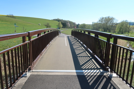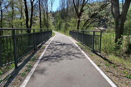 Der asphaltierte Radweg führt weiter nach Frieda zum Anschluss an den Werratalradweg. Der Kolonnenweg der Grenztruppen der DDR ist noch Teil des Radwegs und die Brückenlager des gesprengten Viadukt liegen hoch über der Talsohle.