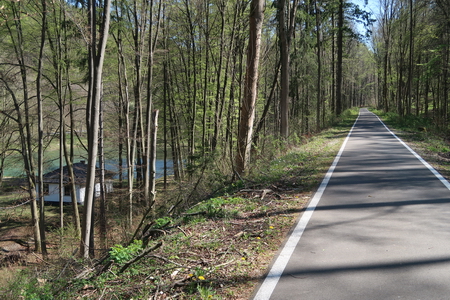 Nach gut 2 km erreicht man die Fischteiche im Pferdebachtal. Bald tauchen die Überreste der Bahnsteige des Haltepunktes Pferdebachtal auf, die Zufahrt zu den Gebäuden des Technischen Hilfswerks (THW) überquert den Radweg.