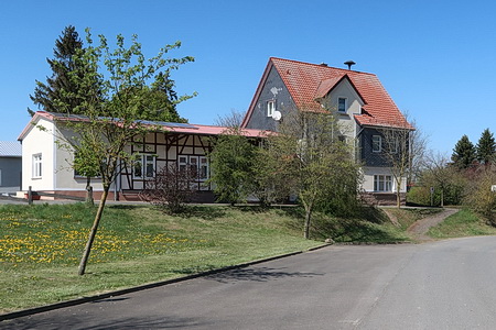 Kleine Wegweiser führen durch den Ort. Die Route führt nicht am alten Bahnhof vorbei. Das gut erhaltene Gebäude dient als Dorfgemeinschaftshaus. Auch nach dem Ort muss man auf der Landstraße weiterfahren. Die Trasse verliert sich den Feldern. Etwas abseits, an einem Querweg beschildert zum "Langen Grund", findet man ein erhaltenes Teilstück der Bahntrasse mit einem Durchlass.