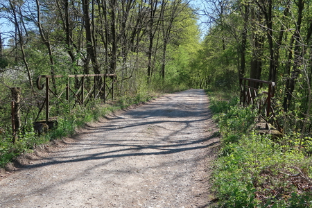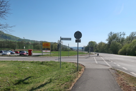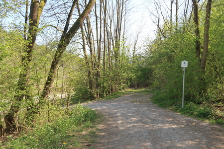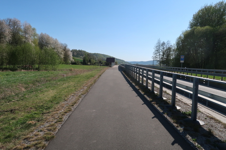Der Weg auf der Trasse ist gut fahrbar, aber die Fahrt ist nicht von langer Dauer. Die Trasse ist zu Ende, die Beschilderung führt zum Radweg entlang der Straße.
