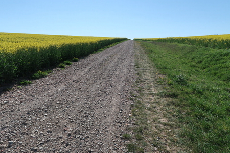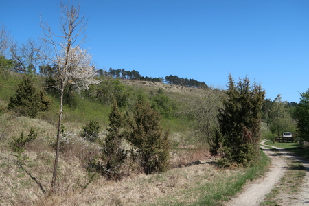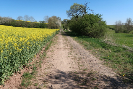 Am östlichen Ortsende von Krombach biegt der neue Südeichsfeldradweg nach rechts ab auf einen Feldweg. Ein kurzer kräftiger Anstieg führt auf der recht ruppigen Piste hinauf auf den Hügel.