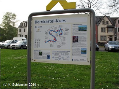 Wir starten an der Mosel in Bernkastel-Kues. Am südwestlichen Ortsende Richtung Lieser findet man auch einen Parkplatz, falls man mit dem Auto anreist.