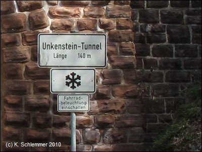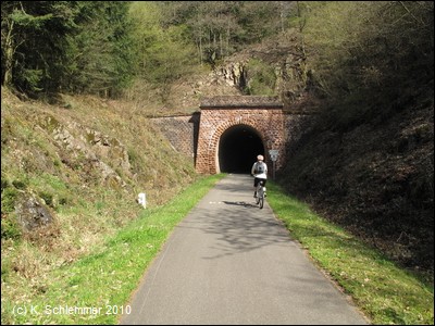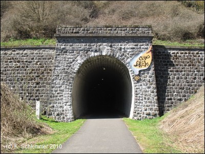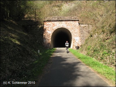 Der Pleiner Tunnel taucht auf: Mit 585 m Länge ein ordentlich langerTunnel! Zum Schutz der Fledermäuse hat man eine Zwischendecke eingezogen, eine geniale Idee. (Schade, dass das beim Milseburgtunnel in der Rhön nicht umgesetzt wurde).